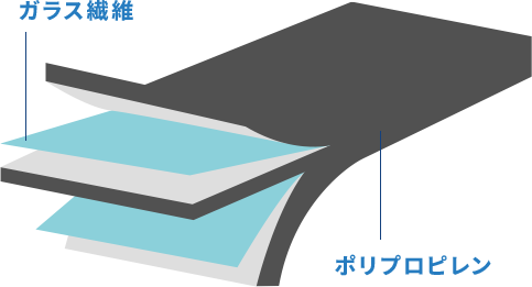 ガラスの長繊維を樹脂(PP素材)で挟み込んだシート状の複合材料で、軽量でありながら高い強度と剛性を兼ね備えている点が特長です。